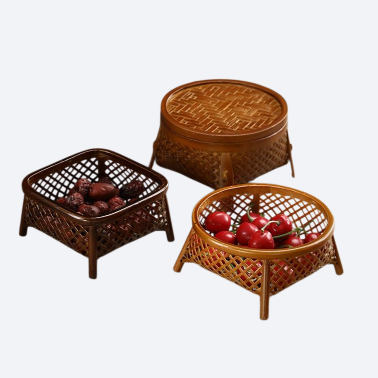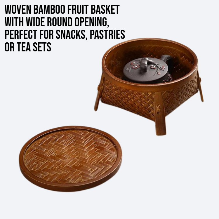 Handcrafted bamboo basket, spacious round mouth design, ideal for fruit and home storage, eco-friendly, durable, lightweight, suitable for kitchen, living room, and gifting.